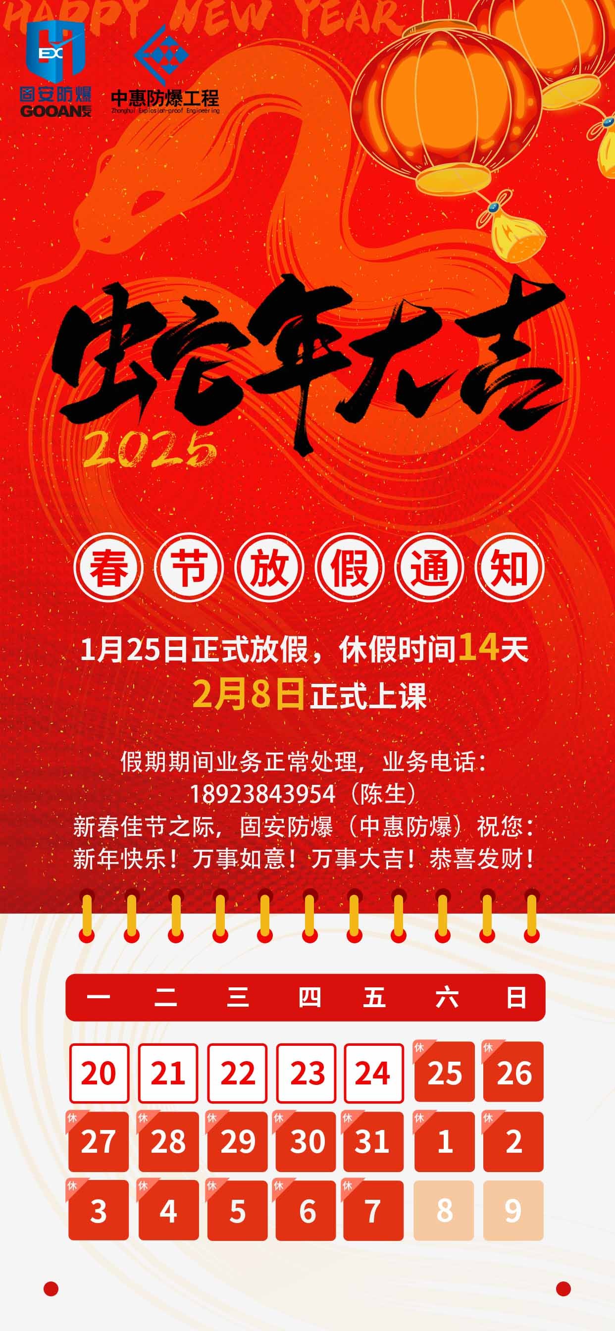 2025年春节放假通知