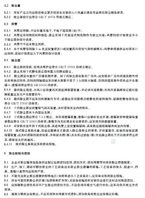 2、粉尘场所杜绝明火、电流或可能导致强烈摩擦的设施。通风除尘系统收尘器设置在建筑物外。