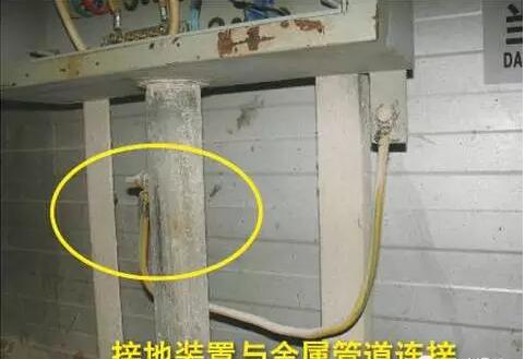 排查依据:GB 50169-2006《电气装置安装工程质量检验及验收规范》3.1.3:接地装置不得与金属管道、建筑物、设备的构建有金属的连接。