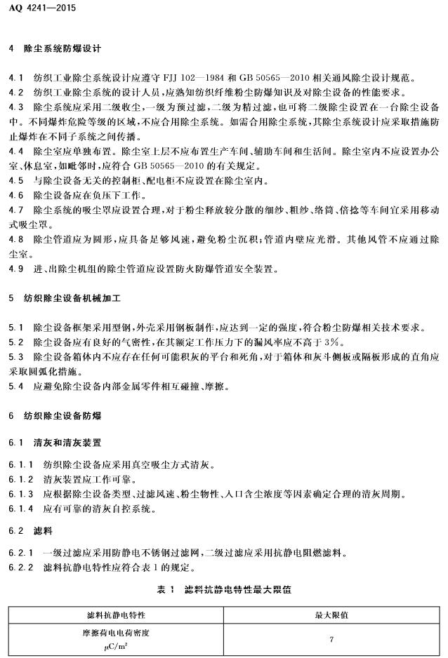 纺织工业除尘设备防爆技术规范