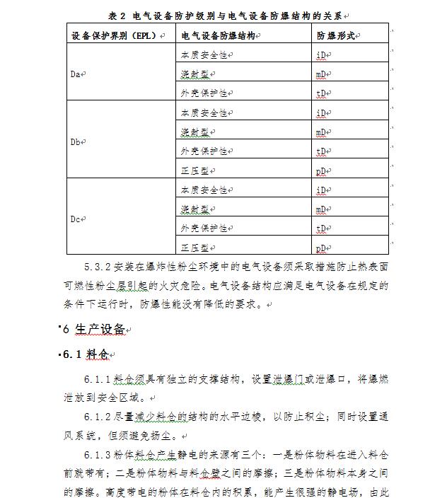 工贸行业可燃性粉尘作业场所 工艺设施防爆技术指南(试行)